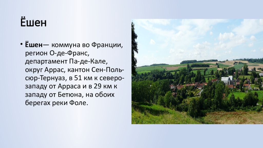 Ёшен — коммуна во Франции, регион О-де-Франс, департамент Па-де-Кале, округ Аррас, кантон Сен-Поль-сюр- Тернуаз, в 51 км к северо-западу от Арраса и в 29 км к западу от Бетюна, на обоих берегах реки Фоле.