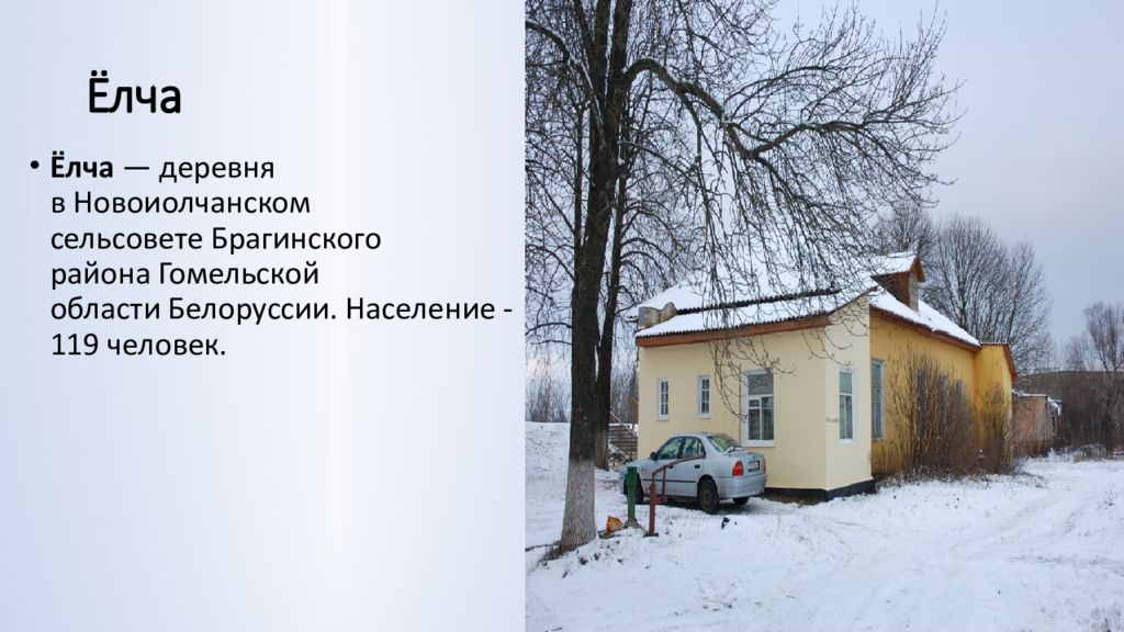 Ёлча — деревня в Новоиолчанском сельсовете Брагинского района Гомельской области Белоруссии. Население -119 человек.