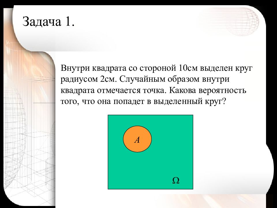 Последний слайд презентации: Геометрическая вероятность: Задача 2