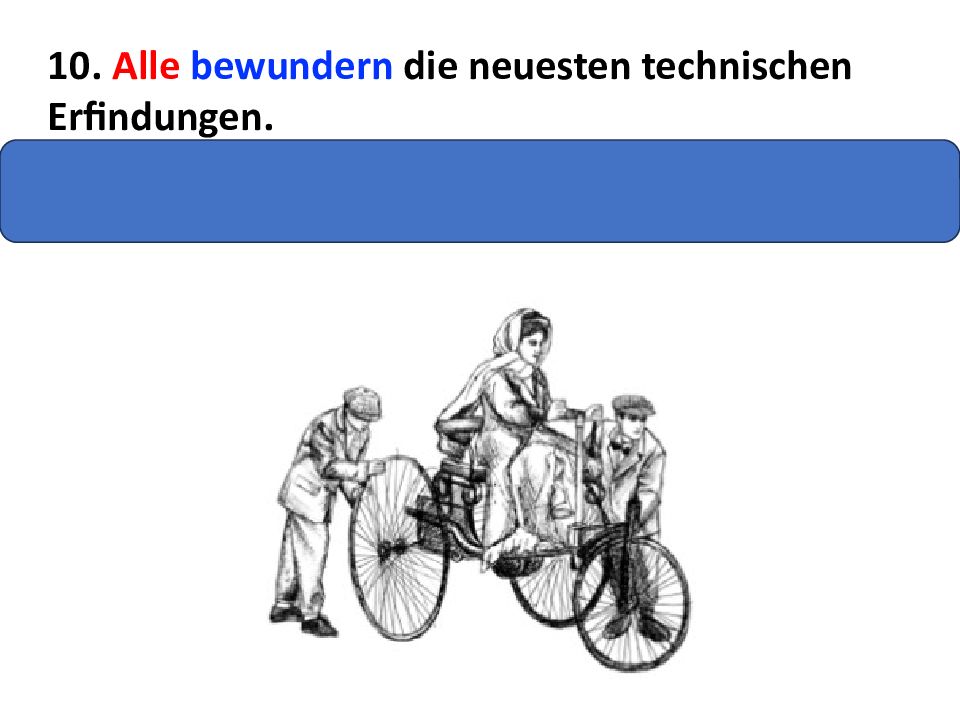 10. Alle bewundern die neuesten technischen Erfindungen. Die neuen technischen Erfindungen werden von allen bewundert.