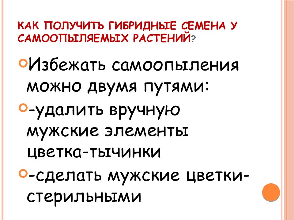Избежать самоопыления можно двумя путями: -удалить вручную мужские элементы цветка-тычинки -сделать мужские цветки-стерильными