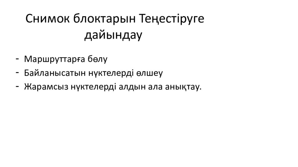 Маршруттарға бөлу Байланысатын нүктелерді өлшеу Жарамсыз нүктелерді алдын ала анықтау.