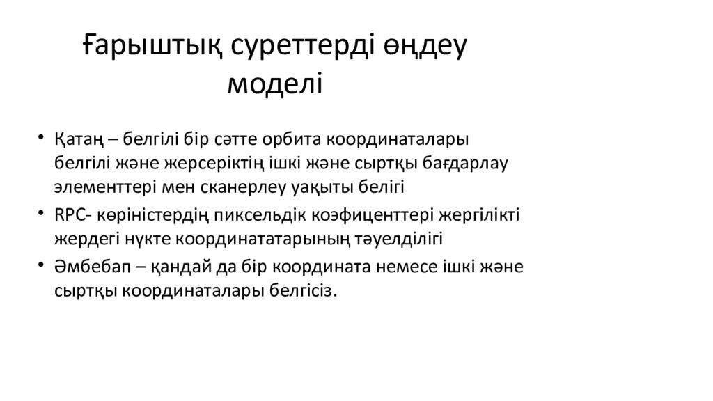Слайд 2: Ғарыштық суреттерді өңдеу моделі
