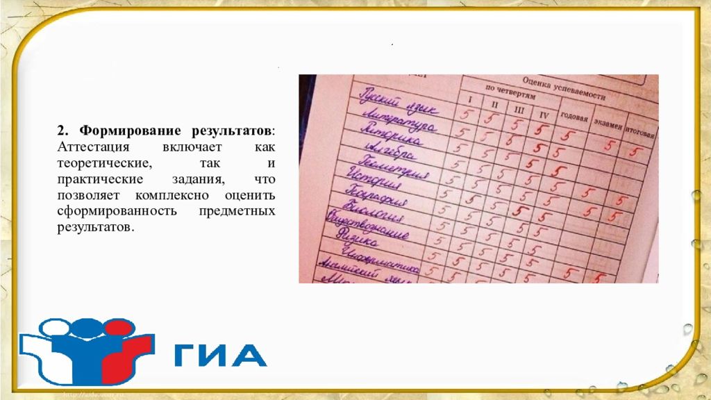 2. Формирование результатов : Аттестация включает как теоретические, так и практические задания, что позволяет комплексно оценить сформированность предметных результатов.