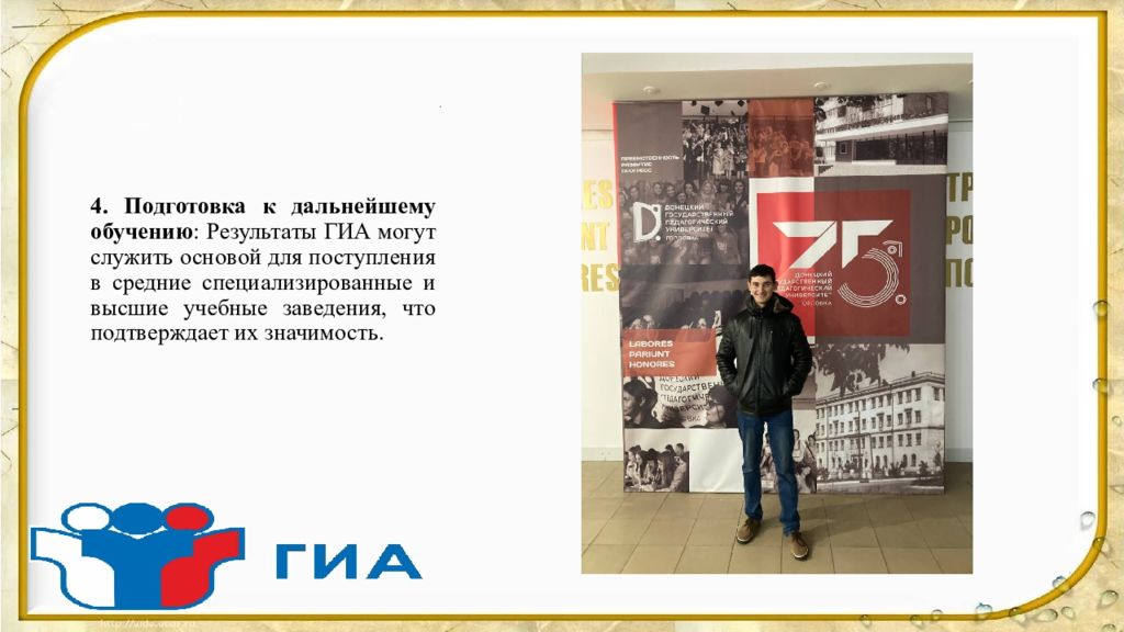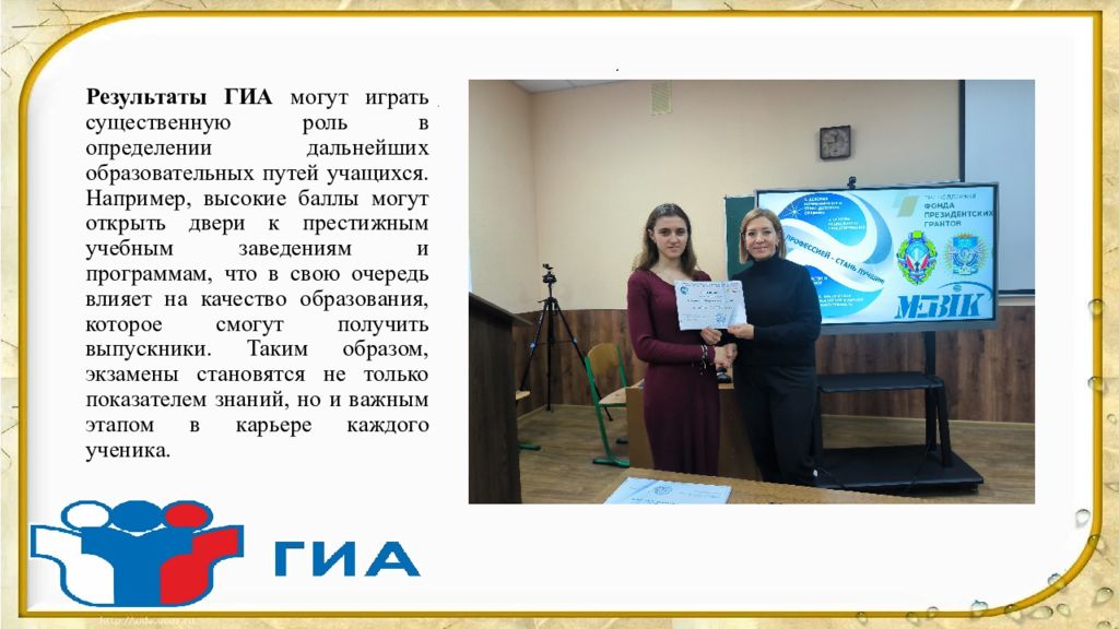 4. Подготовка к дальнейшему обучению : Результаты ГИА могут служить основой для поступления в средние специализированные и высшие учебные заведения, что подтверждает их значимость.