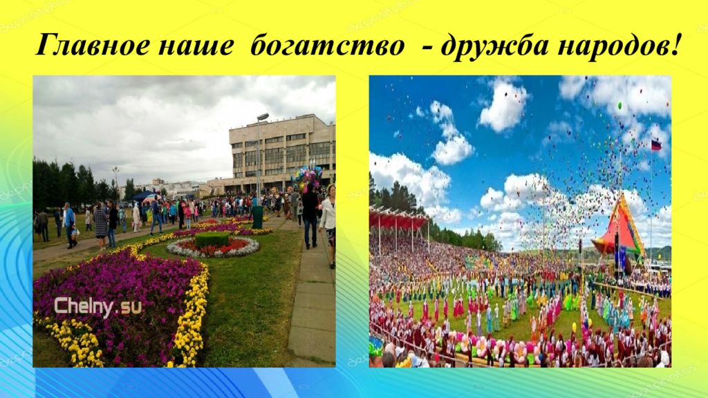 Достопримечательности Набережные Челны сегодня – промышленный, культурный, спортивный, студенческий центр Нижнего Прикамья. Радуют глаз горожан и гостей города многочисленные бульвары, парки, ряды фруктовых деревьев вдоль проспектов, цветочные клумбы… Отличительной особенностью в нашем городе являются мосты и подземные переходы, которые создают удобства передвижению и транспорту и пассажирам.