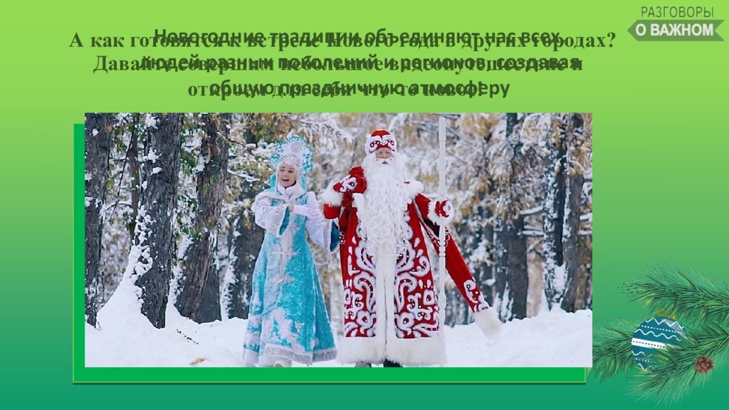 Новогодние традиции объединяют нас всех, людей разных поколений и регионов, создавая общую праздничную атмосферу А как готовятся к встрече Нового года в других городах? Давайте совершим небольшое видеопутешествие и откроем для себя что-то новое!