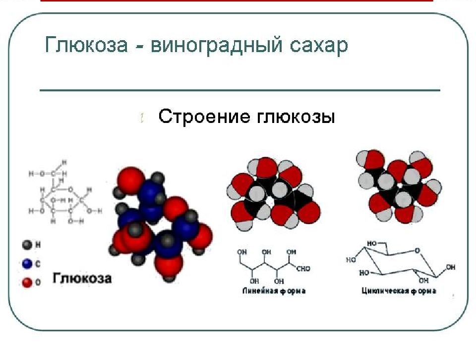 (C6H12O6), или виноградный сахар, или декстроза встречается в соке многих фруктов и ягод, в том числе и винограда, от чего и произошло название этого вида сахара. Является шестиатомным сахаром (гексозой). Глюкозное звено входит в состав полисахаридов (целлюлоза, крахмал, гликоген) и ряда дисахаридов (мальтозы, лактозы и сахарозы), к примеру, в пищеварительном тракте быстро расщепляющихся на глюкозу и фруктозу. Открыта в 1802 году лондонским врачом Уильямом Праутом. В 1819 году Анри Бракконо получил глюкозу из древесных опилок.