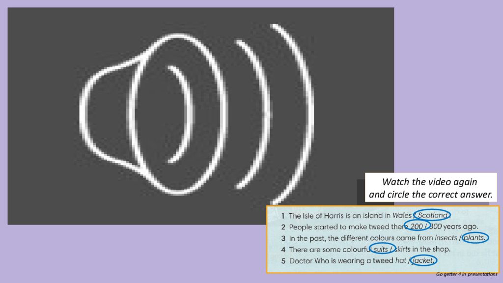 Watch the video again and circle the correct answer. Go getter 4 in presentations