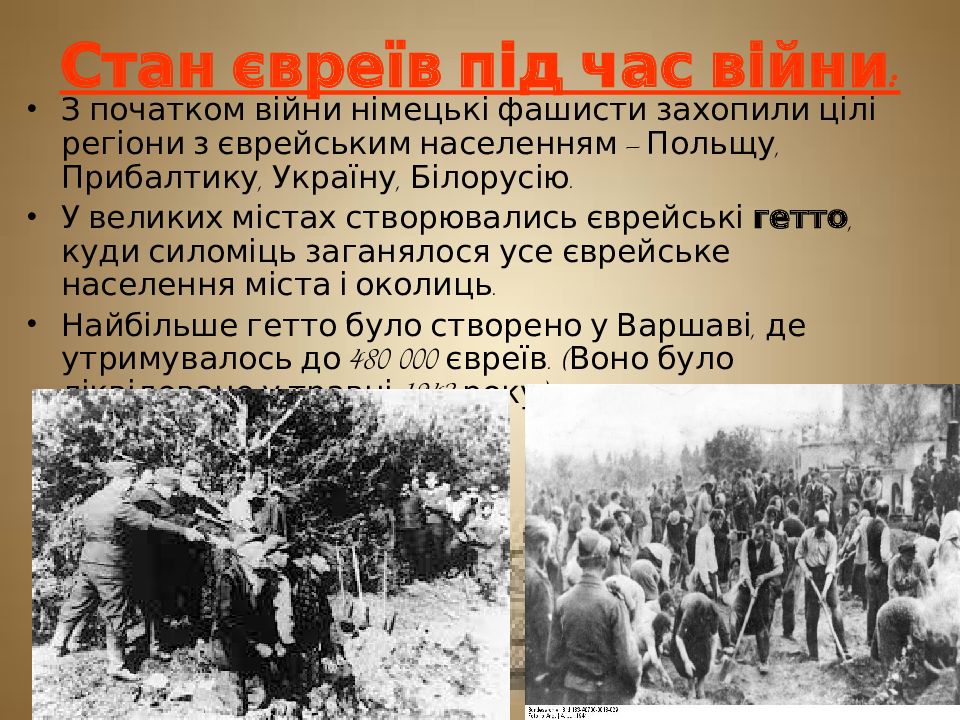 Слайд 9: Стан євреїв під час війни: