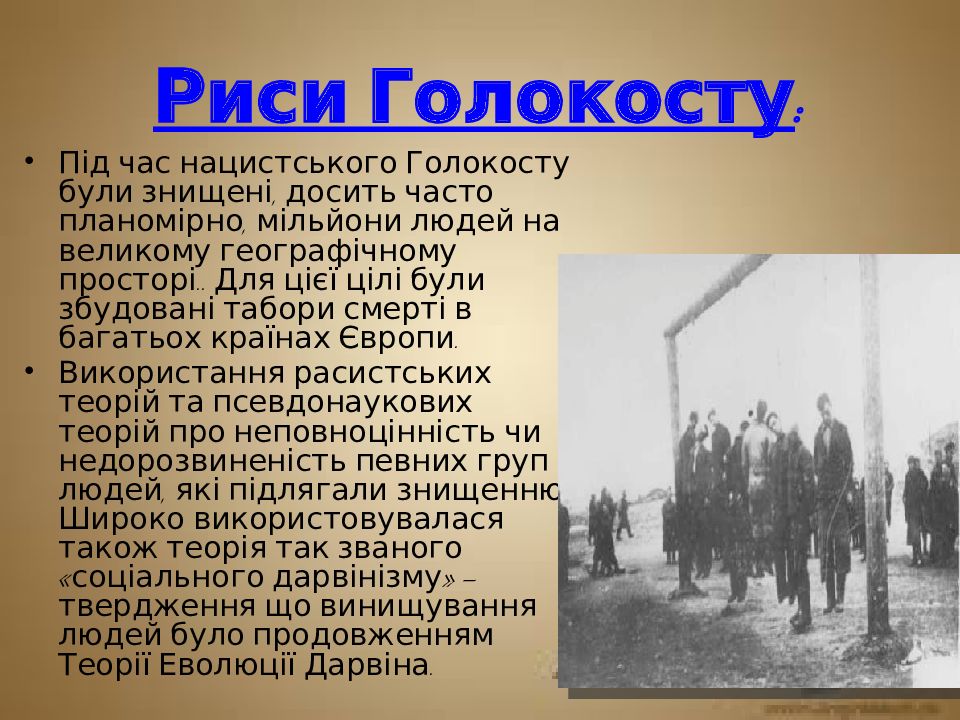 Слайд 5: Риси Голокосту :