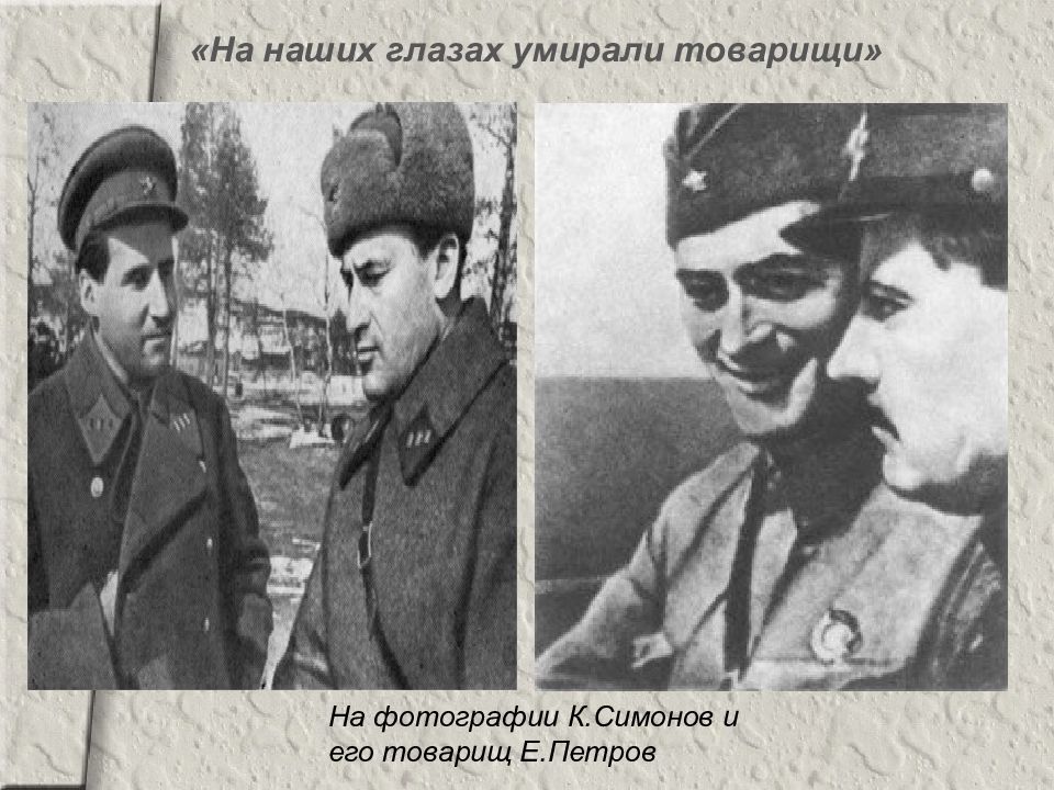 «На наших глазах умирали товарищи» На фотографии К.Симонов и его товарищ Е.Петров