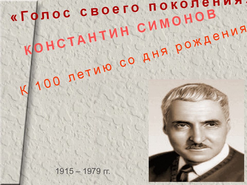 «Голос своего поколения» КОНСТАНТИН СИМОНОВ К 100 летию со дня рождения 1915 – 1979 гг.