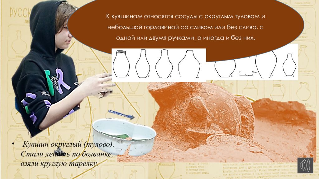Кувшин округлый (тулово). Стали лепить по болванке, взяли круглую тарелку. К кувшинам относятся сосуды с округлым туловом и небольшой горловиной со сливом или без слива, с одной или двумя ручками, а иногда и без них.
