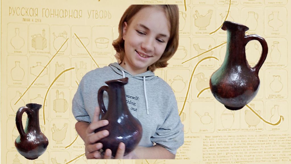 "Гончарная утварь" К о л л е к ц и я с о с у д о в. К у в ш и н. Пройдёмся за керамикою в магазин, А там - вдруг великан и исполин, Расскажет нам о вечном, о родном: Что быт наш променял, утратил дом? Посуду что нас грела на века, Кувшины по которым в нас тоска… Смирнова Арина