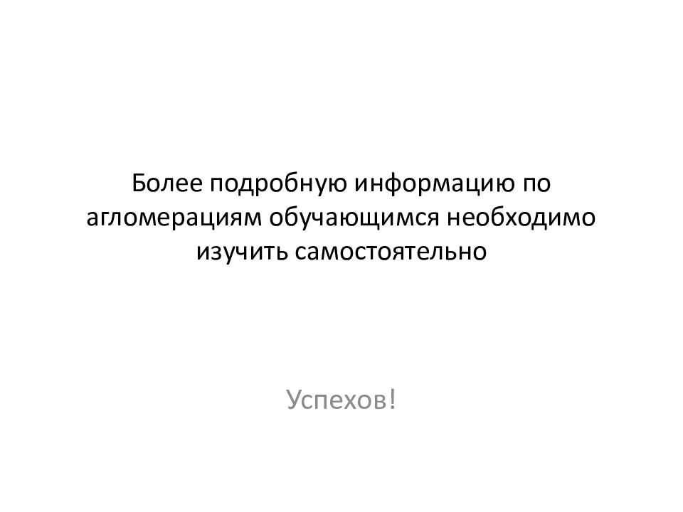 Последний слайд презентации: ГОРОДСКАЯ АГЛОМЕРАЦИЯ: Более подробную информацию по агломерациям обучающимся необходимо изучить самостоятельно
