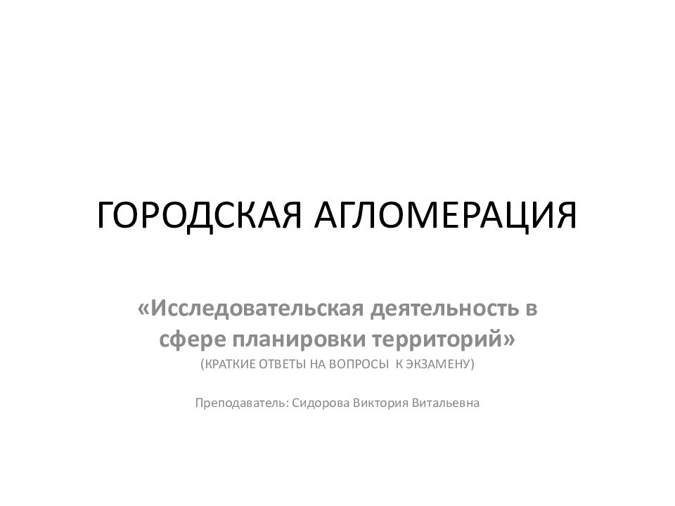 «Исследовательская деятельность в сфере планировки территорий» (КРАТКИЕ ОТВЕТЫ НА ВОПРОСЫ К ЭКЗАМЕНУ) Преподаватель: Сидорова Виктория Витальевна