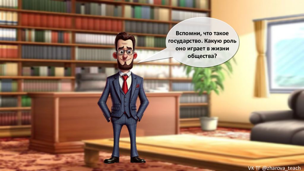 Вспомни, что такое государство. Какую роль оно играет в жизни общества? VK ТГ @zharova _ teach
