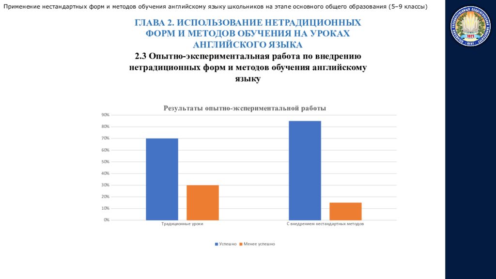 Применение нестандартных форм и методов обучения английскому языку школьников на этапе основного общего образования (5–9 классы) ГЛАВА 2. ИСПОЛЬЗОВАНИЕ НЕТРАДИЦИОННЫХ ФОРМ И МЕТОДОВ ОБУЧЕНИЯ НА УРОКАХ АНГЛИЙСКОГО ЯЗЫКА 2.3 Опытно-экспериментальная работа по внедрению нетрадиционных форм и методов обучения английскому языку