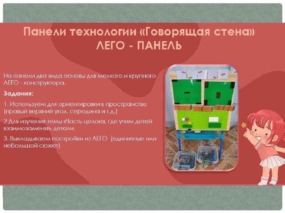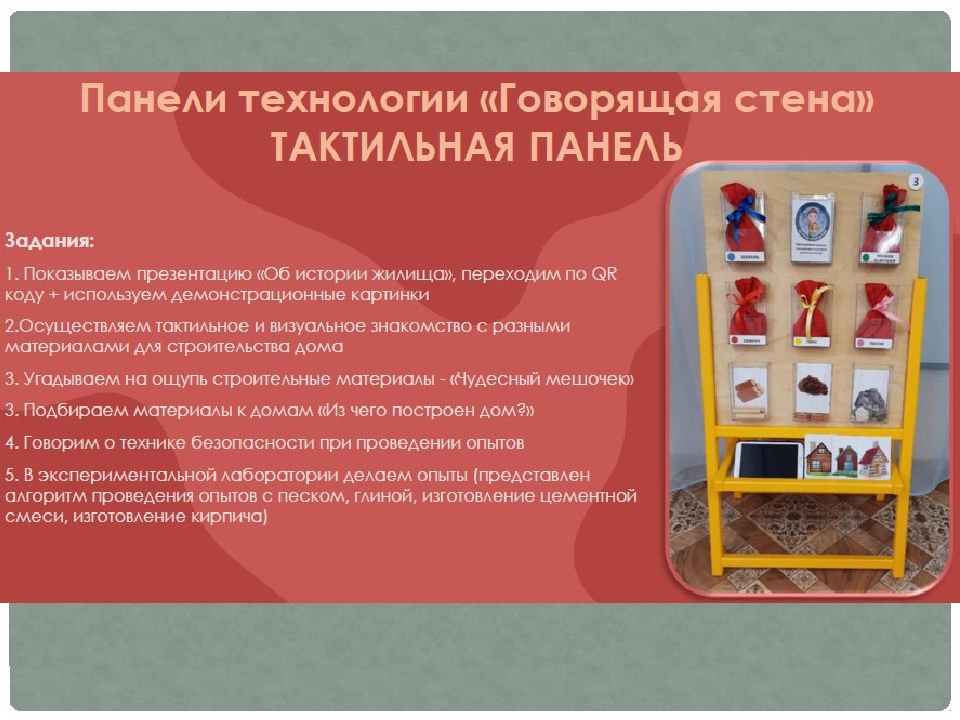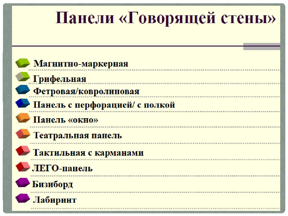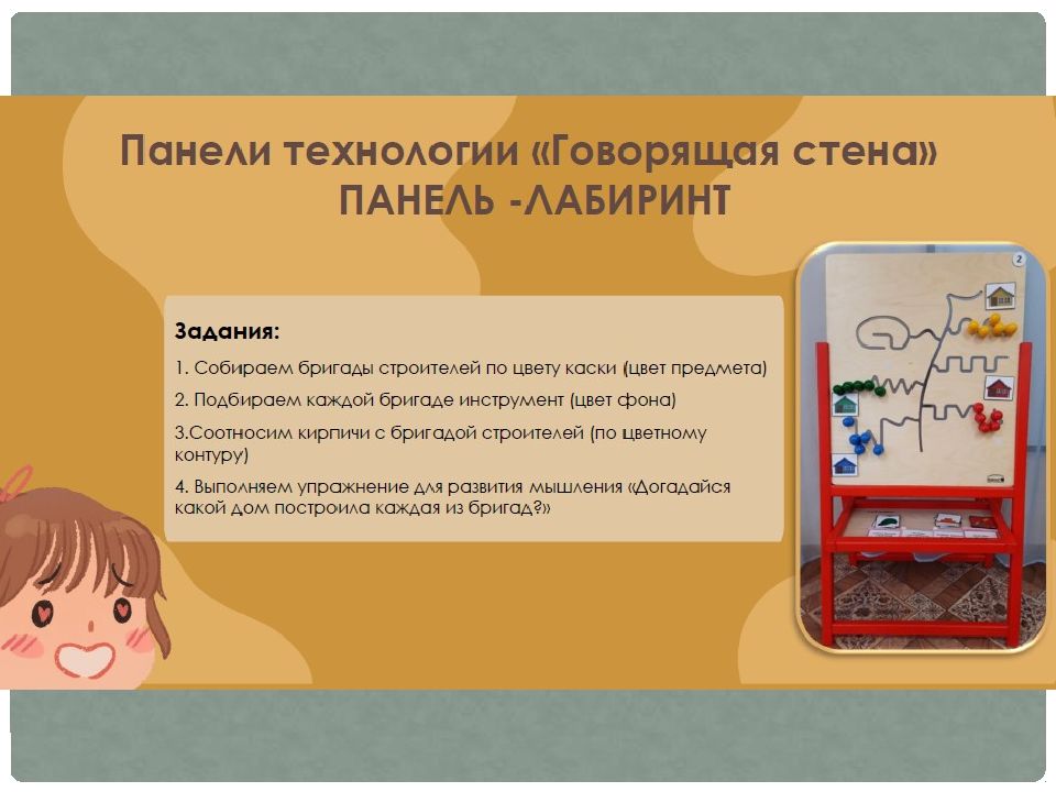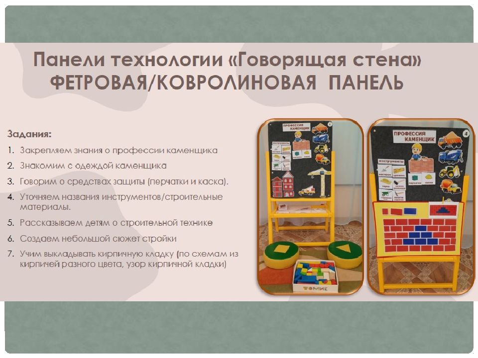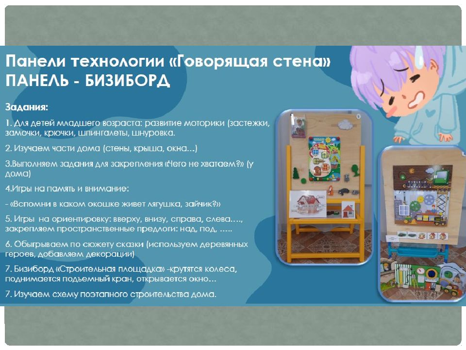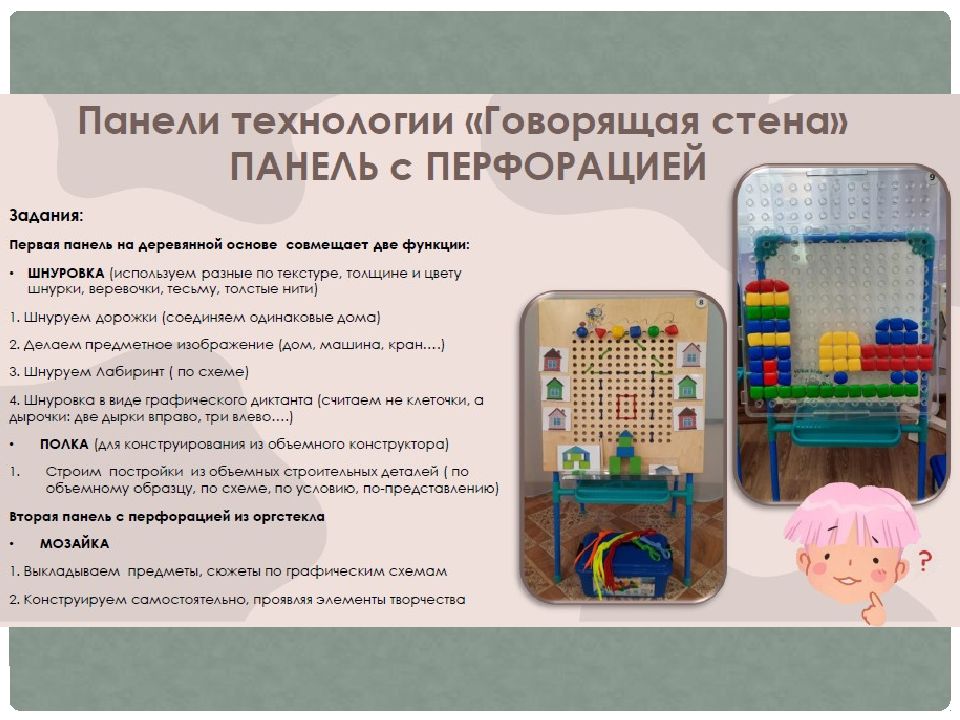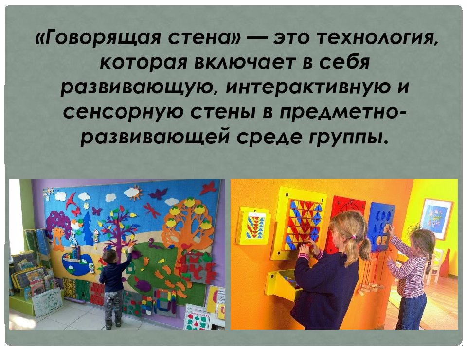 «Говорящая стена» — это технология, которая включает в себя развивающую, интерактивную и сенсорную стены в предметно-развивающей среде группы.