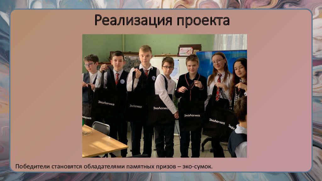 Реализация проекта Победители становятся обладателями памятных призов – эко-сумок.