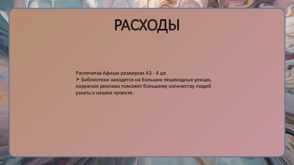 Распечатка Афиши размером А3 - 4 шт. Библиотеки находятся на больших пешеходных улицах, наружная реклама поможет большему количеству людей узнать о нашем проекте.