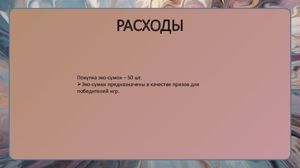 Покупка эко-сумок – 50 шт. Эко-сумки предназначены в качестве призов для победителей игр.