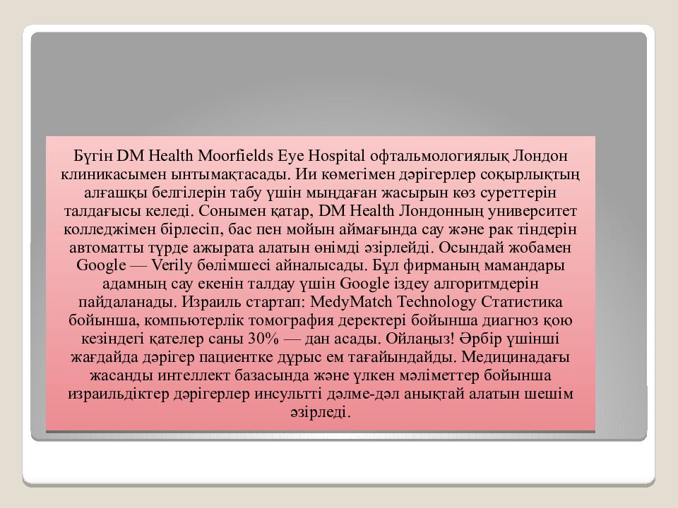 https:// www.youtube.com/watch?v=A8yEEAWYEkY Hi-Tech. Медицинадағы жасанды интеллект
