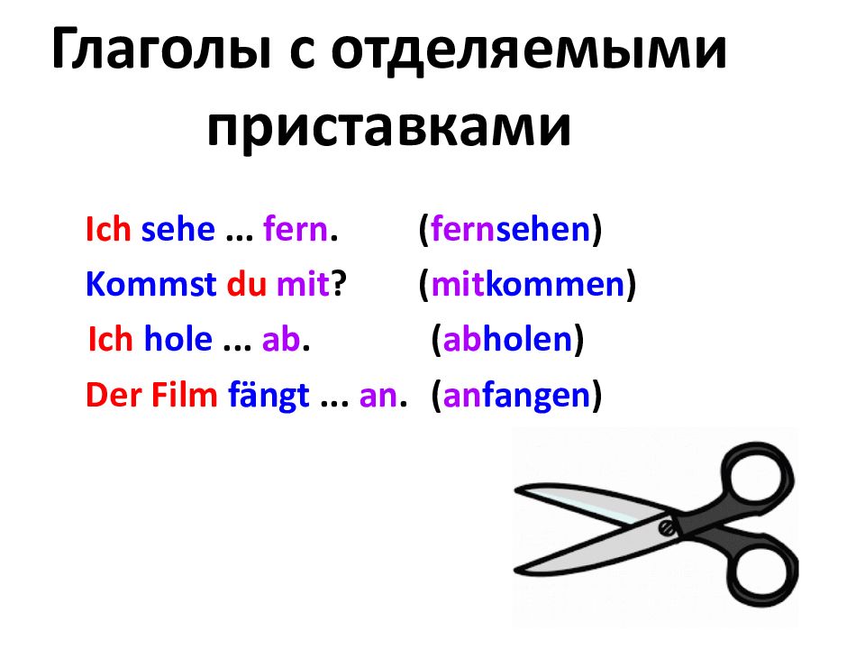 Ich sehe... fern. Kommst du mit ? Ich hole... ab. Der Film fängt... an. ( fern sehen ) ( mit kommen ) ( ab holen ) ( an fangen )