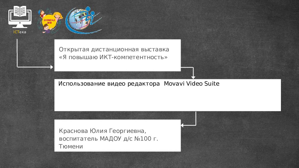 ICT ека Краснова Юлия Г еоргиевна, воспитатель МАДОУ д / с № 100 г. Тюмени Открытая дистанционная выставка «Я повышаю ИКТ-компетентность» Использование видео редактора Movavi Video Suite