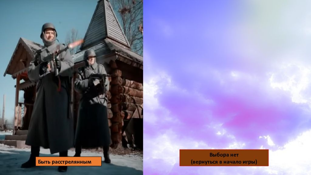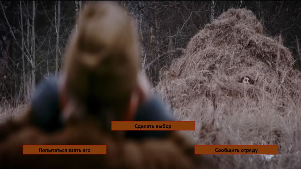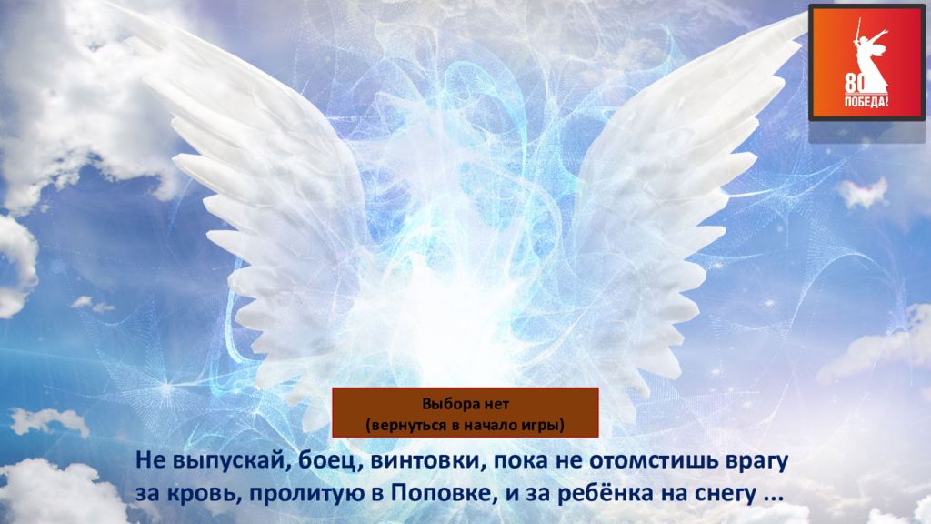Не выпускай, боец, винтовки, пока не отомстишь врагу за кровь, пролитую в Поповке, и за ребёнка на снегу... Выбора нет (вернуться в начало игры)
