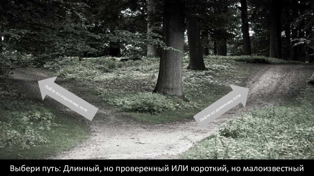 Пойти по длинному пути Пойти по короткому пути Выбери путь: Длинный, но проверенный ИЛИ короткий, но малоизвестный