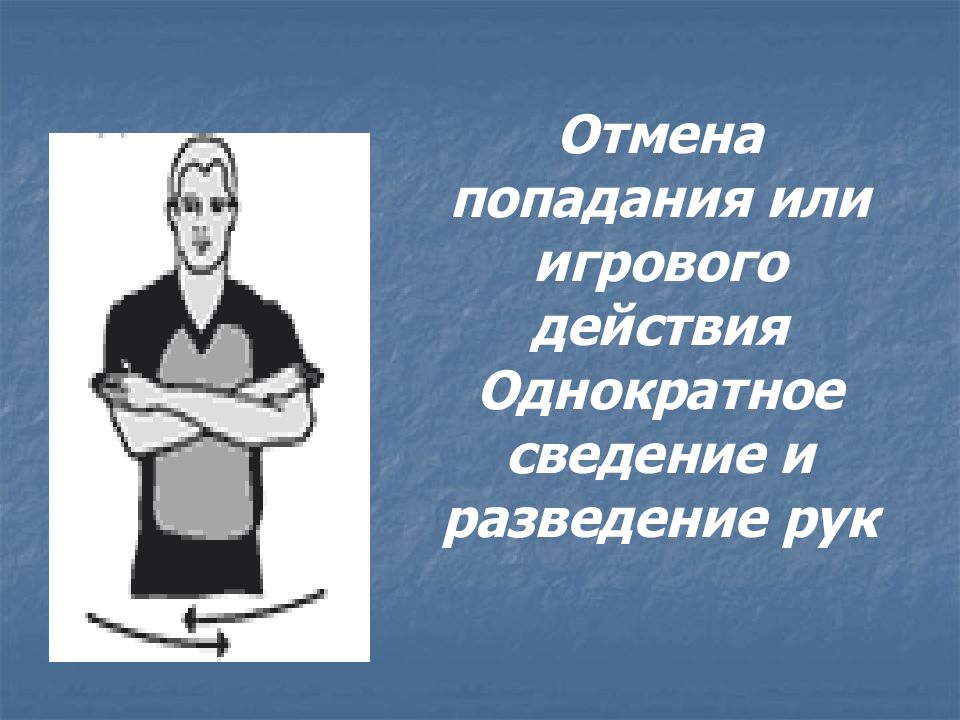 Отмена попадания или игрового действия Однократное сведение и разведение рук