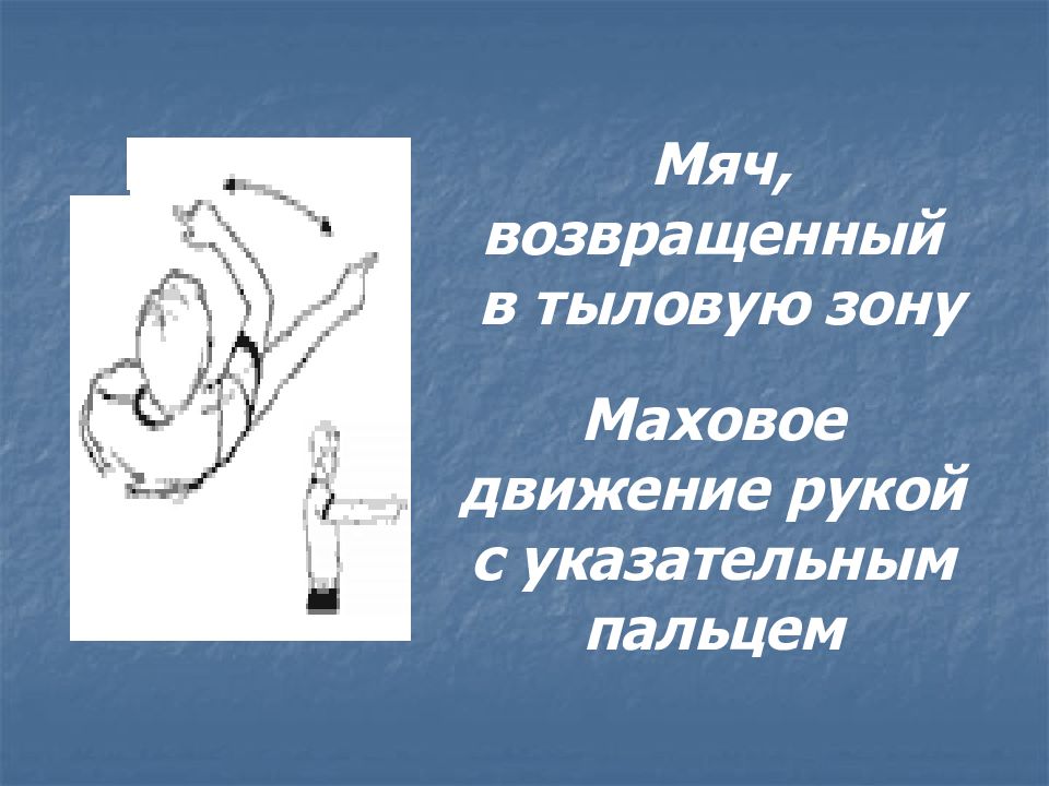Мяч, возвращенный в тыловую зону Маховое движение рукой с указательным пальцем