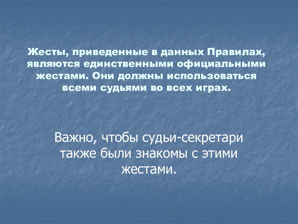 Важно, чтобы судьи-секретари также были знакомы с этими жестами.
