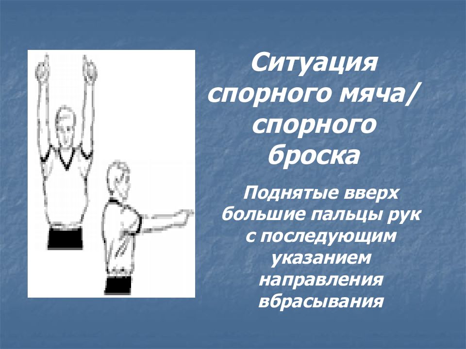 Ситуация спорного мяча/спорного броска Поднятые вверх большие пальцы рук с последующим указанием направления вбрасывания