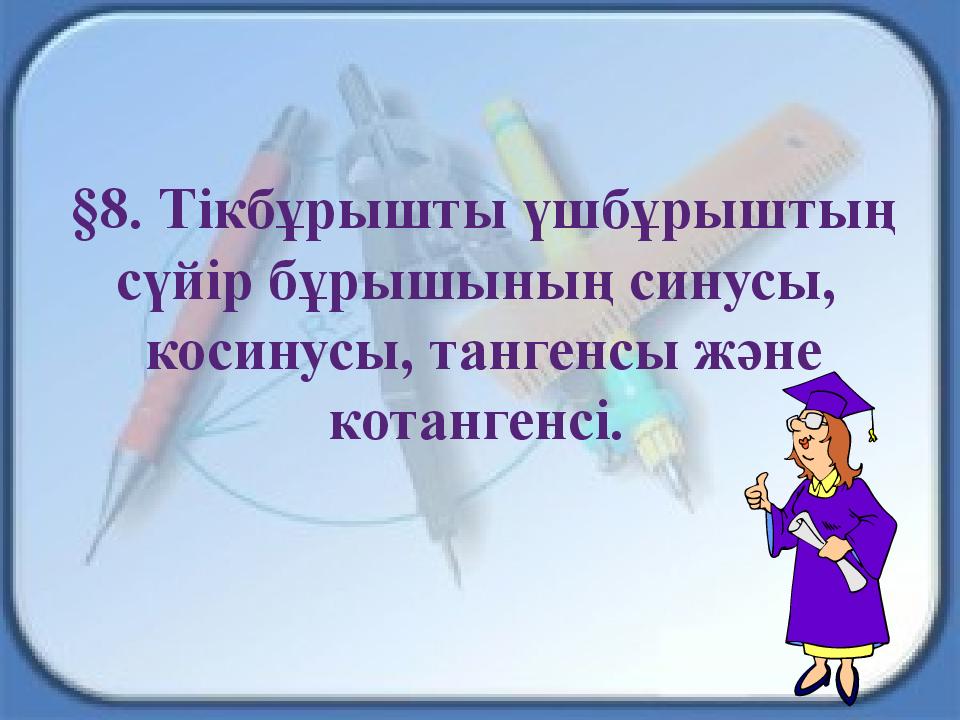 §8. Тікбұрышты үшбұрыштың сүйір бұрышының синусы, косинусы, тангенсы және котангенсі.