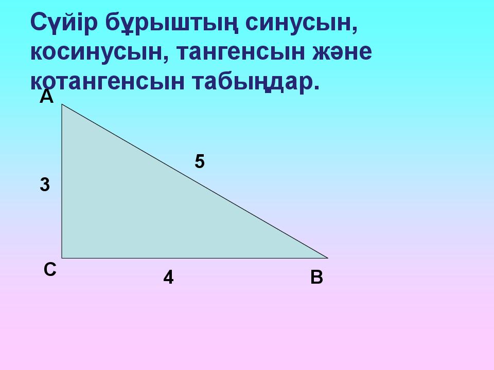 Слайд 11: Сүйір бұрыштың синусын, косинусын, тангенсын және котангенсын табыңдар