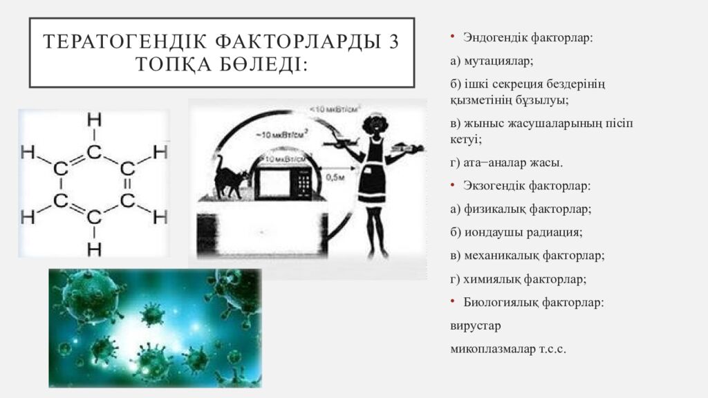 Слайд 9: Тератогендік факторларды 3 топқа бөледі :