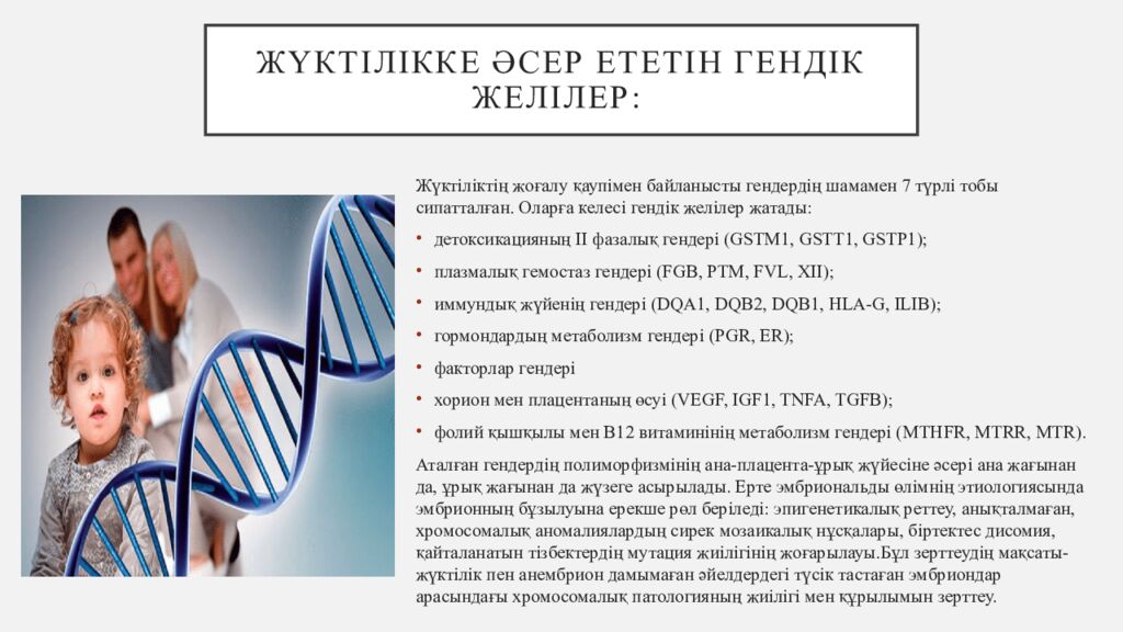 Слайд 12: Жүктілікке әсер ететін гендік желілер:
