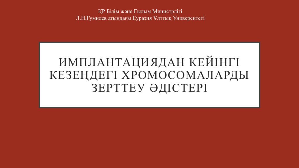 Первый слайд презентации: Имплантациядан кейінгі кезеңдегі хромосомаларды зерттеу әдістері