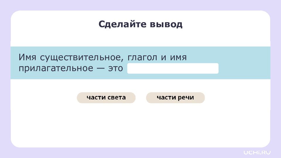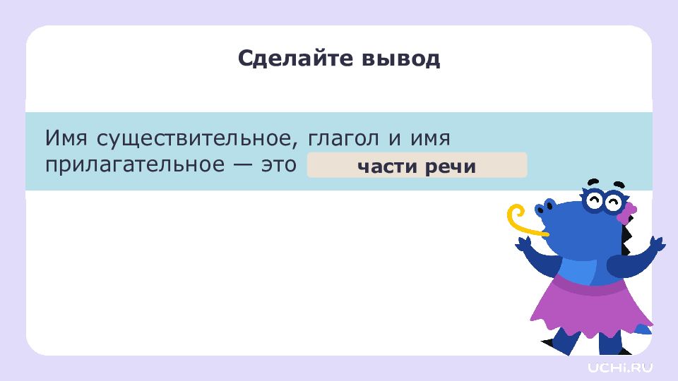Сделайте вывод Имя существительное, глагол и имя прилагательное — это части речи