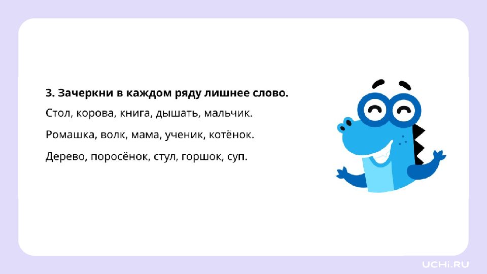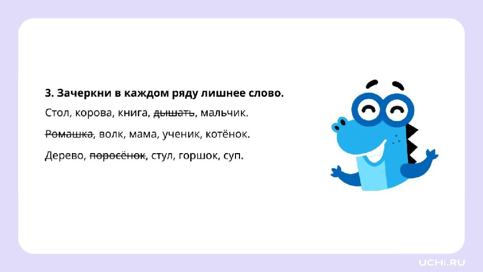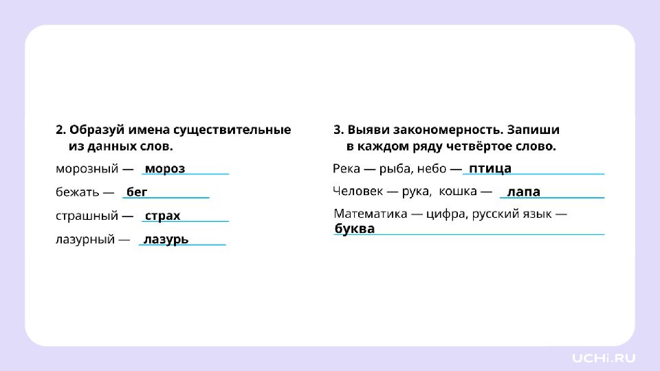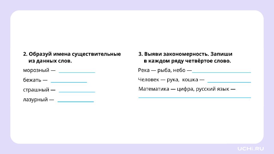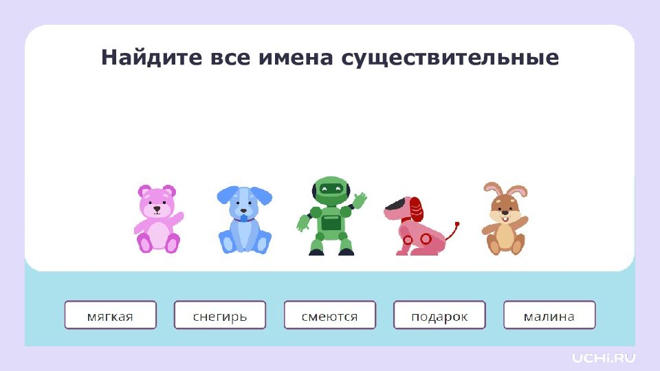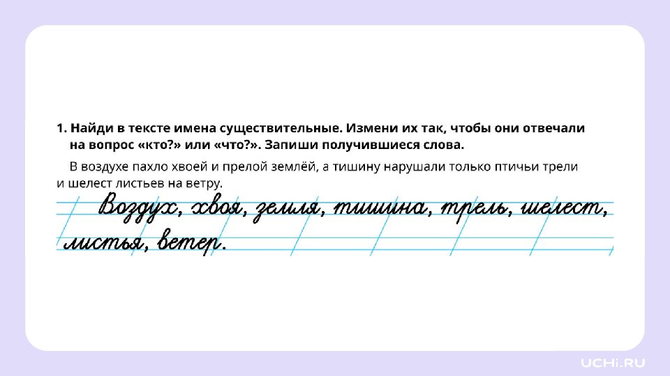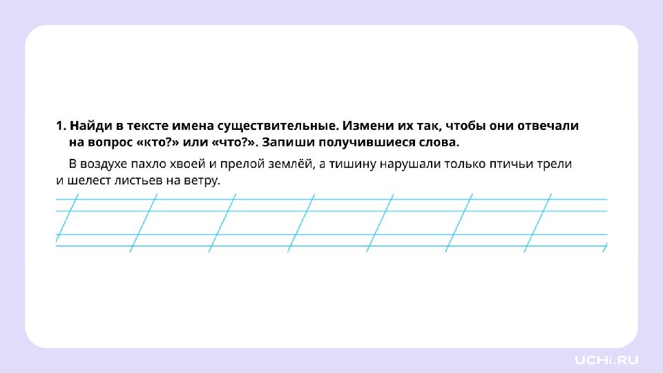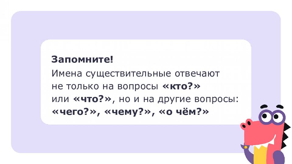Запомните! Имена существительные отвечают не только на вопросы «кто?» или «что?», но и на другие вопросы: «чего?», «чему?», «о чём?»