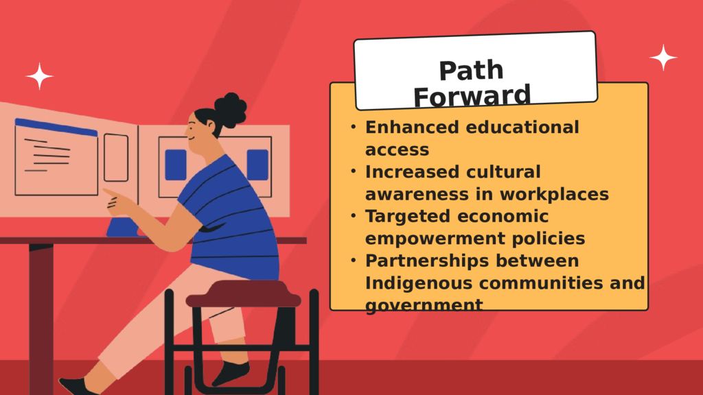 Enhanced educational access Increased cultural awareness in workplaces Targeted economic empowerment policies Partnerships between Indigenous communities and government Path Forward