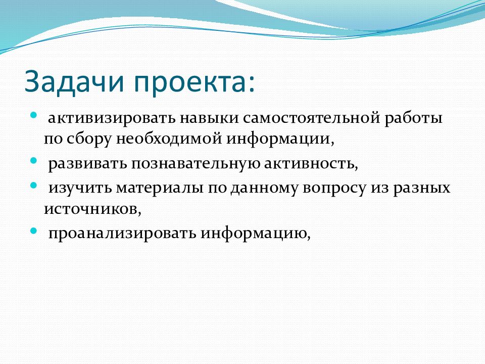 активизировать навыки самостоятельной работы по сбору необходимой информации, развивать познавательную активность, изучить материалы по данному вопросу из разных источников, проанализировать информацию,