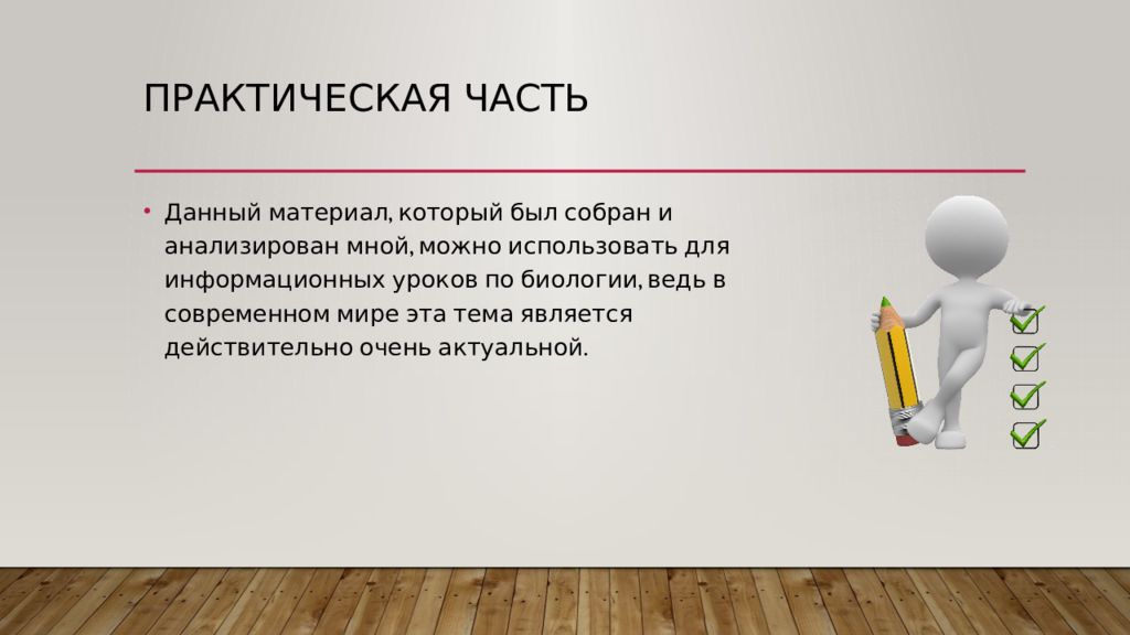 Данный материал, который был собран и анализирован мной, можно использовать для информационных уроков по биологии, ведь в современном мире эта тема является действительно очень актуальной.