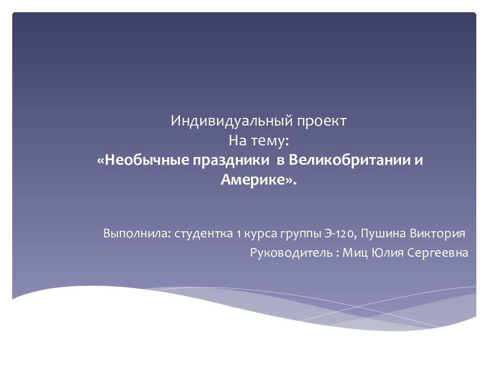 Первый слайд презентации: Индивидуальный проект На тему : «Необычные праздники в Великобритании и Америке»