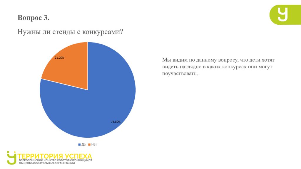 Нужны ли стенды с конкурсами? Вопрос 3. Мы видим по данному вопросу, что дети хотят видеть наглядно в каких конкурсах они могут поучаствовать.