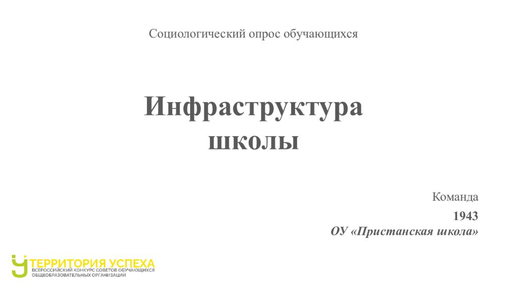 Последний слайд презентации: Инфраструктура школы Команда Социологический опрос обучающихся 1943 ОУ