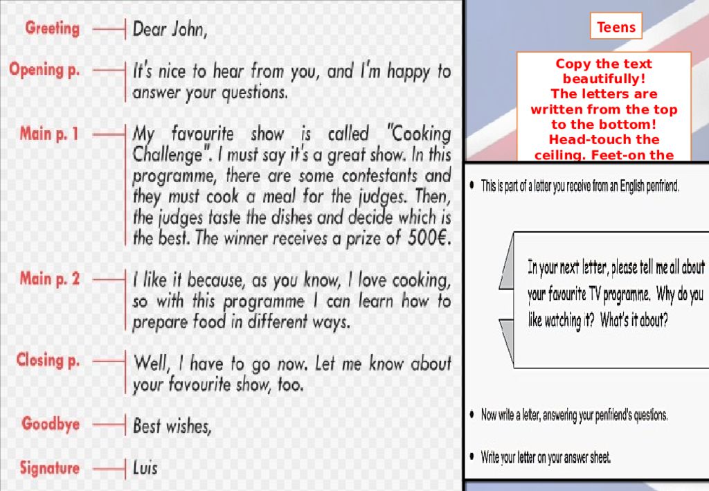 Copy the text beautifully! The letters are written from the top to the bottom! Head-touch the ceiling. Feet-on the floor! Teens